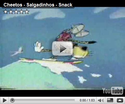 Chester Cheetah cartoon cat insisted that other cheese snacks, “ain’t nothin’ but fluff”. Other slogans he says or said frequently were/are, “It ain’t easy bein’ cheesy” (late 1980s and early 1990s) and, “The cheese that goes crunch!” from the early 1990s to 1996. Then he used the slogan, “Dangerously cheesy!” He does all within his power to get his hands on a bag of these jummy snacks. The trouble is he failed a lot! In one commercial he chased a truck on a motorcycle and didn’t notice the manhole in his path. Here is that commercial from Brazil in Portuguese!