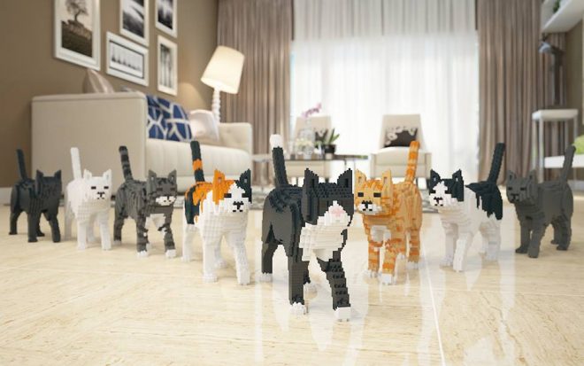The LEGO cats have a pixelated appearance when assembled. JEKCA says they’re fun to build and make a great decoration to place around the home.