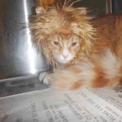 UPDATE October 20 Gup has been adopted by Barbara Yabor and is being spoiled by a family who is absolutely in love with him! See photo near the end of this article. This is the story of a cat who ended up at a shelter after biting his owner for dressing him up for …