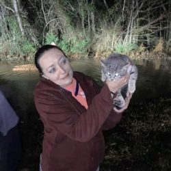 A helpless kitten stuck in a tree during high waters in Madison County, Alabama was rescued overnight Friday by the Hazel Green Volunteer Fire Department. The department posted the story, along with photos, on their Facebook page “At 22:30 tonight we received a call of a cat stuck in a tree in flood waters. …