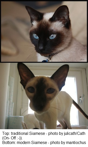 I have owned both traditional and modern Siamese. I have bred the latter for 25 years. I rarely get requests for traditional Siamese lately, although I did ten years ago. I think the public has come to appreciate the elegance of the Siamese. They want something more than a pointed alley cat.